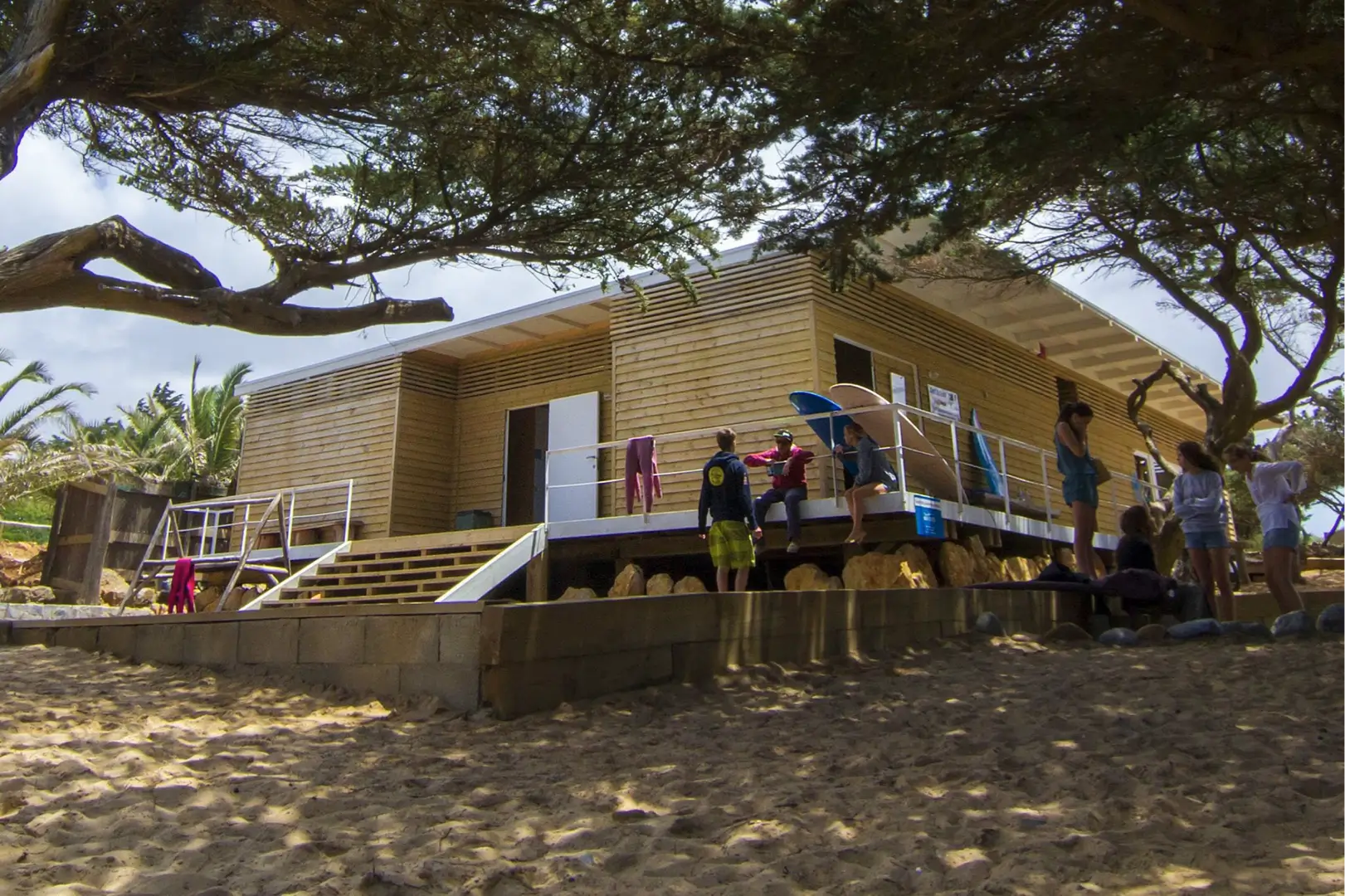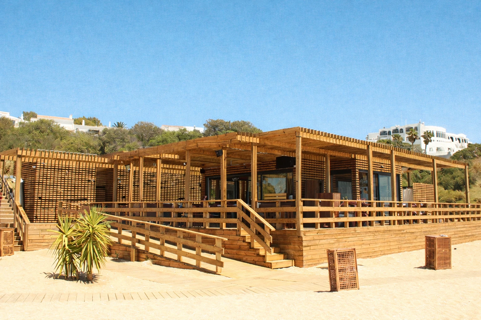 Apoios de praia e edifícios costeiros em madeira
