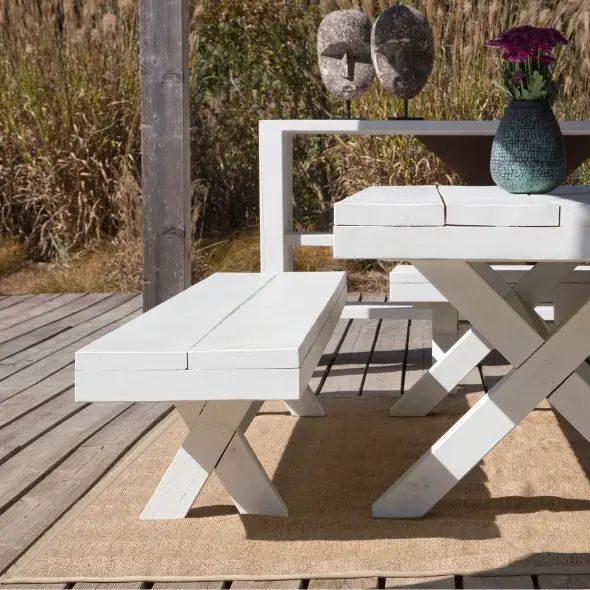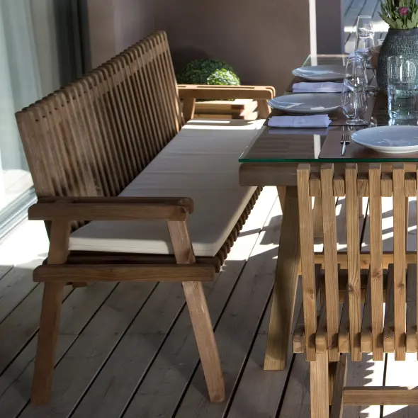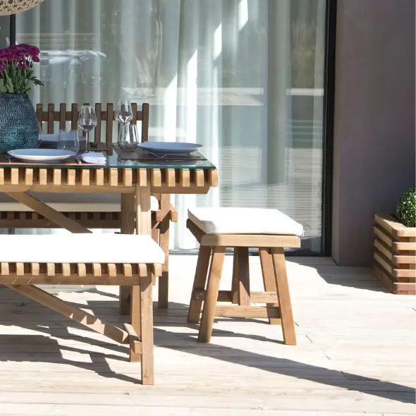 Em vez de ter de recolher os móveis de jardim durante o período de inverno, com o mobiliário de madeira da CarmoForm, pode deixá-los ao ar livre sem preocupações.