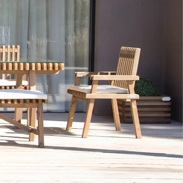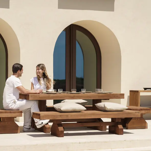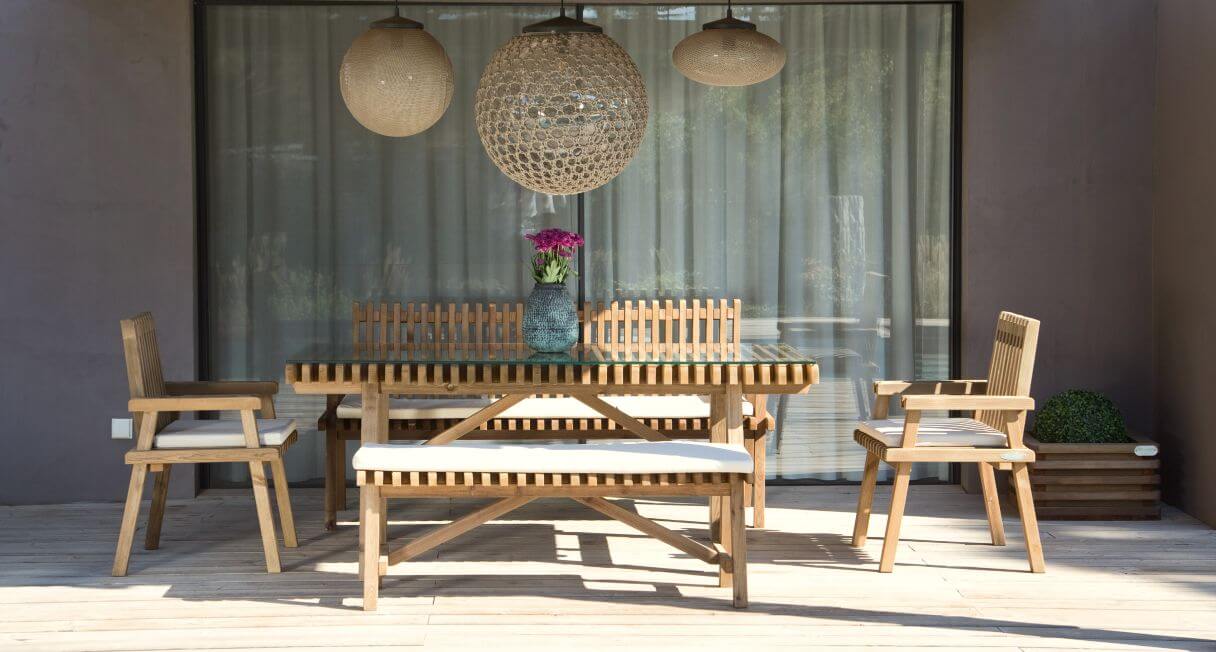 Os móveis de jardim CarmoForm são peças em madeira robustas e elegantes.