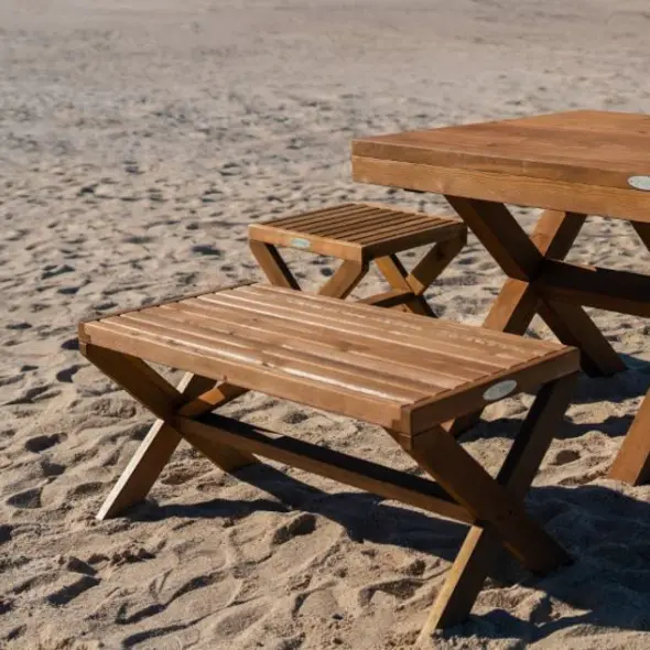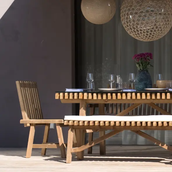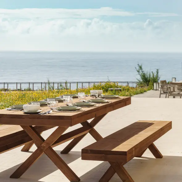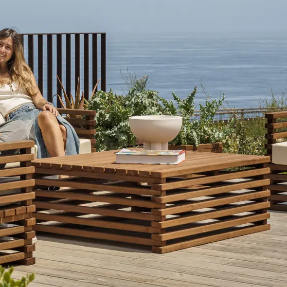 A linha de móveis de jardim Sunset permite desfrutar de momentos de serenidade, não apenas ao final da tarde, mas a qualquer momento do dia. Idealizada para quem valoriza a harmonia com a natureza, esta gama de móveis em madeira natural oferece uma atmosfera descontraída, tanto em ambientes de praia como de jardim.