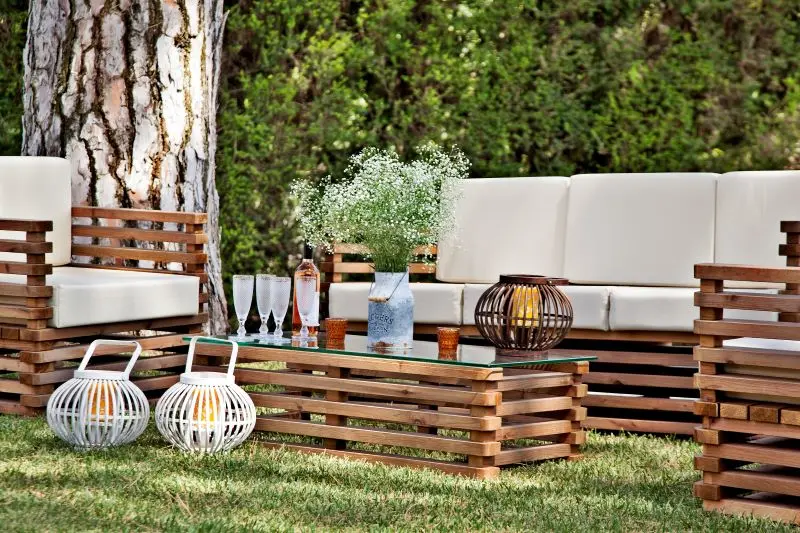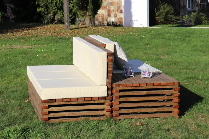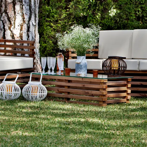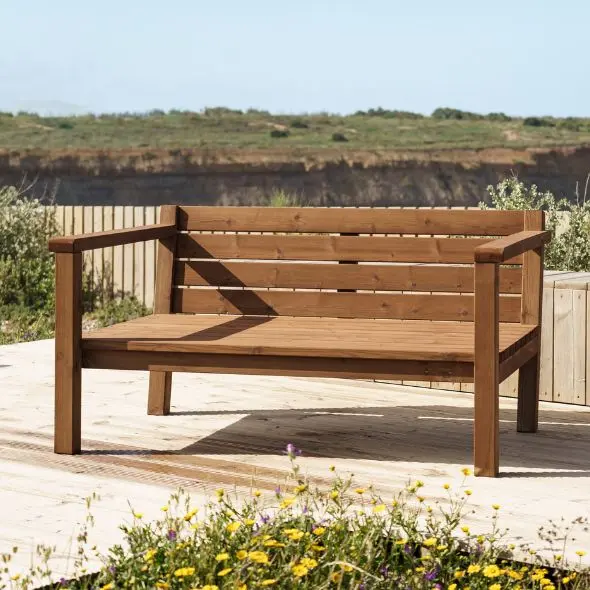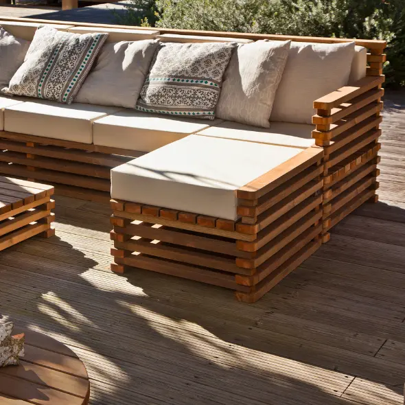 Para limpar, só precisa de passar um pano húmido e detergente próprio para madeiras no seu sofá de jardim.