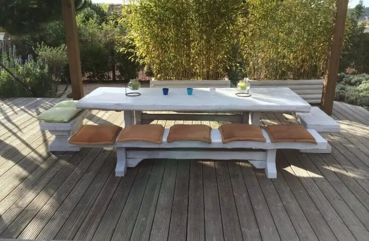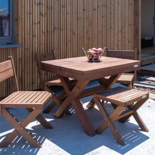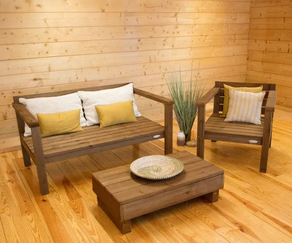 Sim, graças ao tratamento em autoclave a que as madeiras são sujeitas durante a construção do nosso mobiliário de jardim.