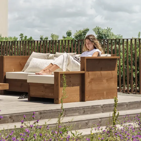 A linha SudExpress da CarmoForm é a escolha ideal para jardins com personalidade. Esta gama de móveis de jardim em madeira natural proporciona um toque de modernidade ao seu espaço exterior, conjugando um design sofisticado com formas planas e elegantes.