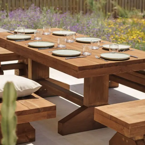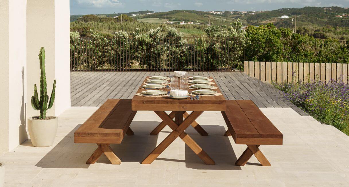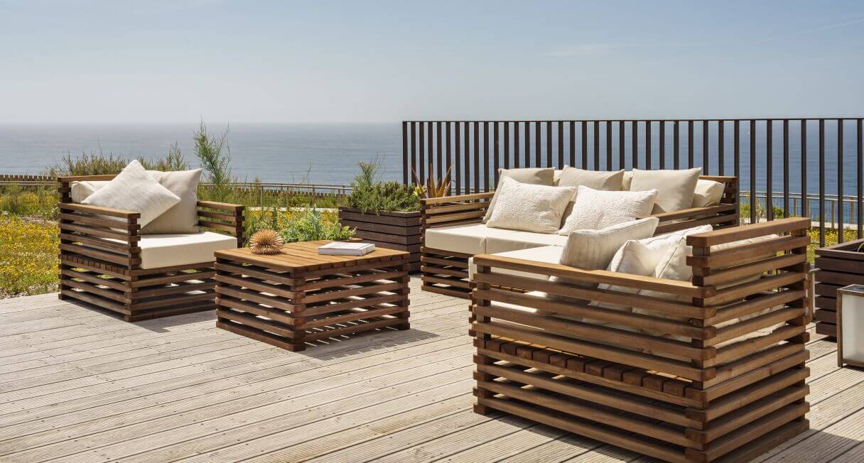 Os móveis de jardim em madeira da CarmoForm são robustos e feitos para durar.