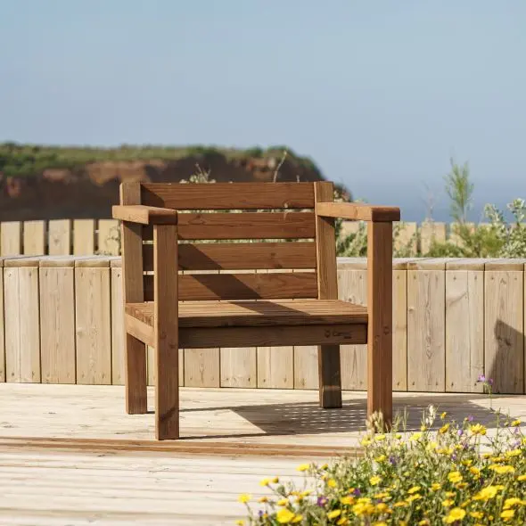 Graças à robustez da madeira tratada, de origem sustentável, este mobiliário de jardim promete durabilidade, mesmo sendo deixado no exterior todo o ano e exposto às alterações climáticas. Só a CarmoForm dá 20 anos de garantia contra o apodrecimento precoce da madeira.